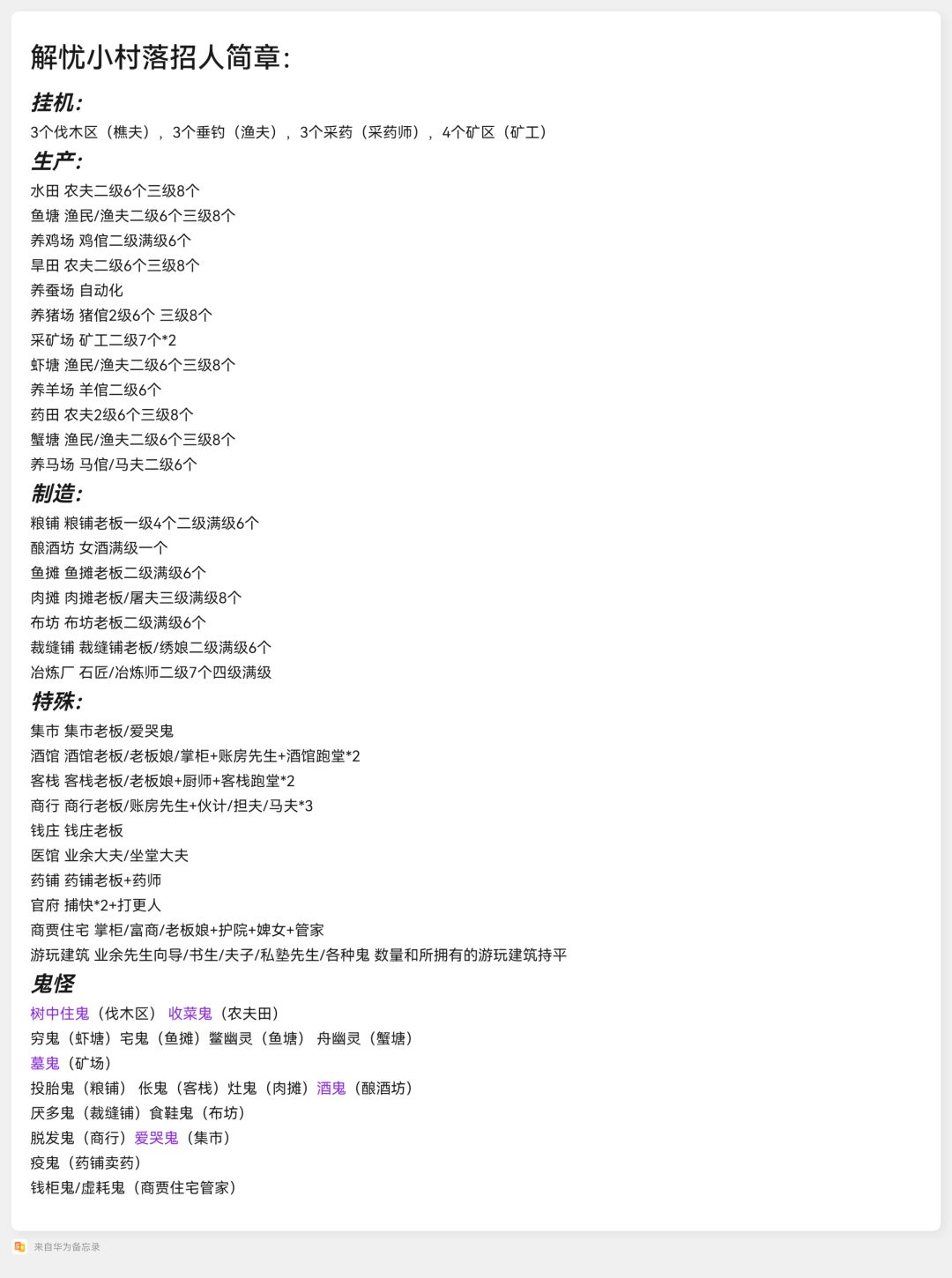 若使用鬼怪可减少村民预备使用。