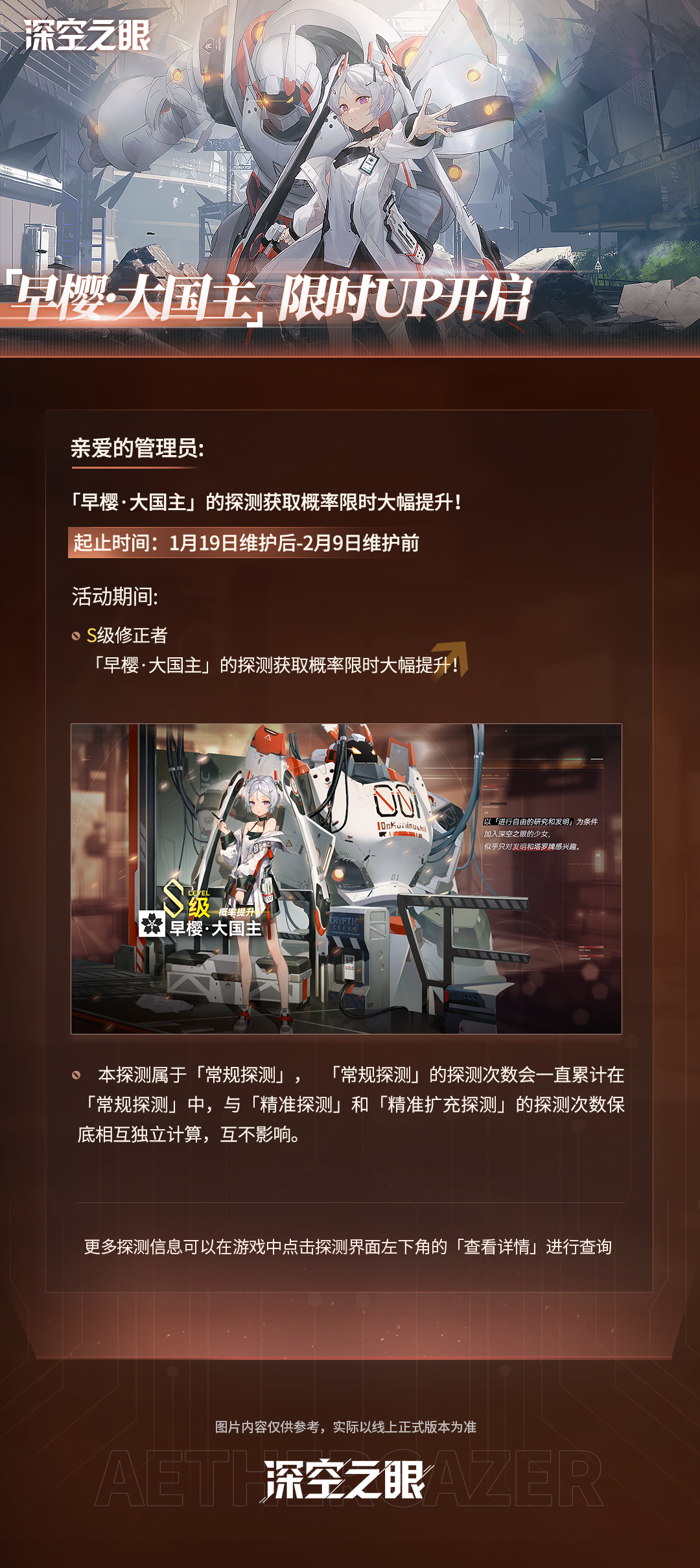 「刺耳的安魂曲」活动探测及「早樱·大国主」限时UP将于1月19日维护结束后开启!