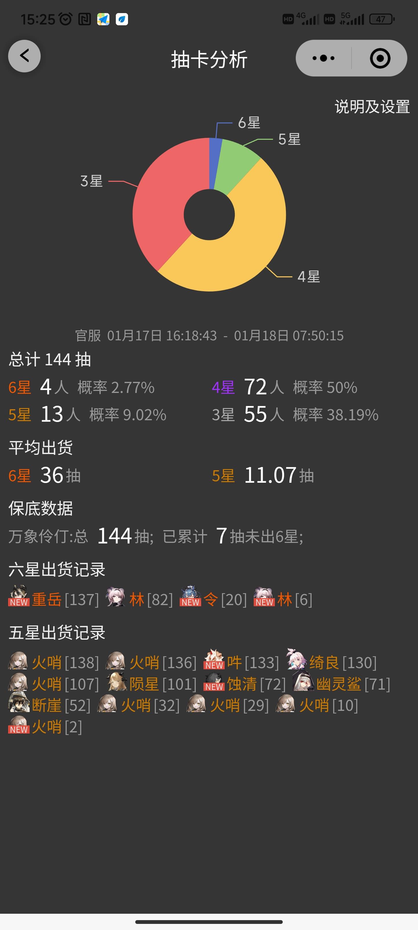 这次真的好欧,本来想井个令出来的结果第二发就出了,后来寻思着还剩这么多抽那就搞个大哥但怕歪,结果一个都没歪就出了,上次3.5周年二十抽斥罪和翼德都出了,这两次限定都好欧,现在直接备战怪猎限定了…