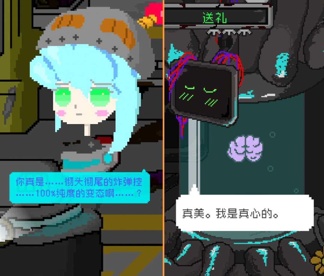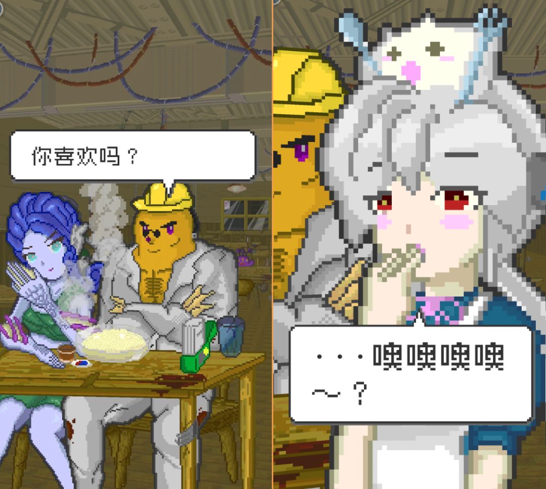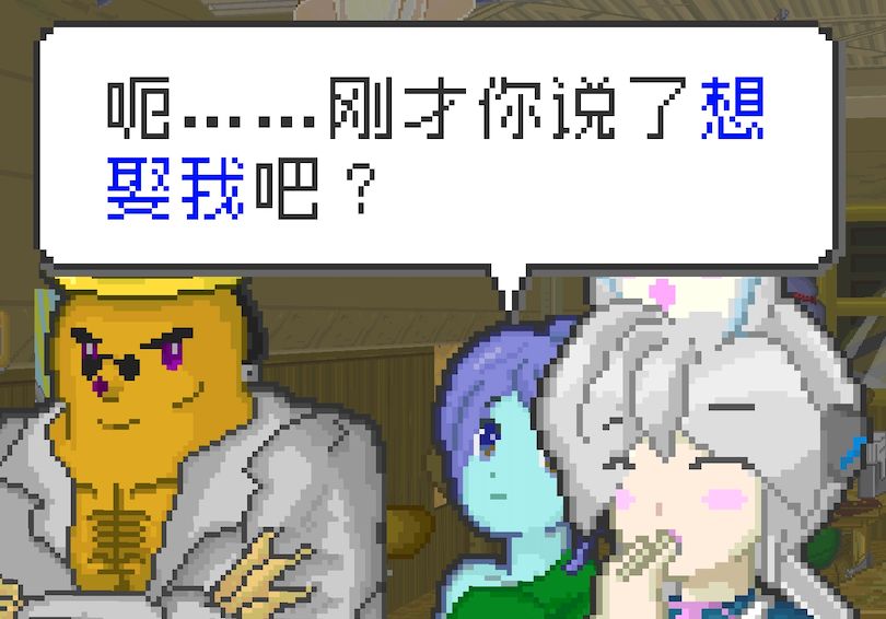 另外还想说的是,如果你玩过前作,会发现作者在演出表现力上有了长足的进步——虽然还是不好说的超糊像素,但是一些转场和角色微妙的表情变化,那种可爱的感觉反而更加到位了。