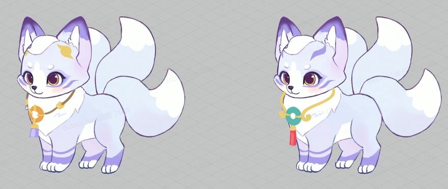 最初,策划小弟们的想法:白色的狐狸也太仙太可爱了吧,要做宝宝白狐!(已经把cp的事情忘得一干二净)然后,好像九尾狐的设定也不错,要不做九尾吧!既然都有九条尾巴了,会点法术不过分吧,比如火焰魔法!(某些中二发言)