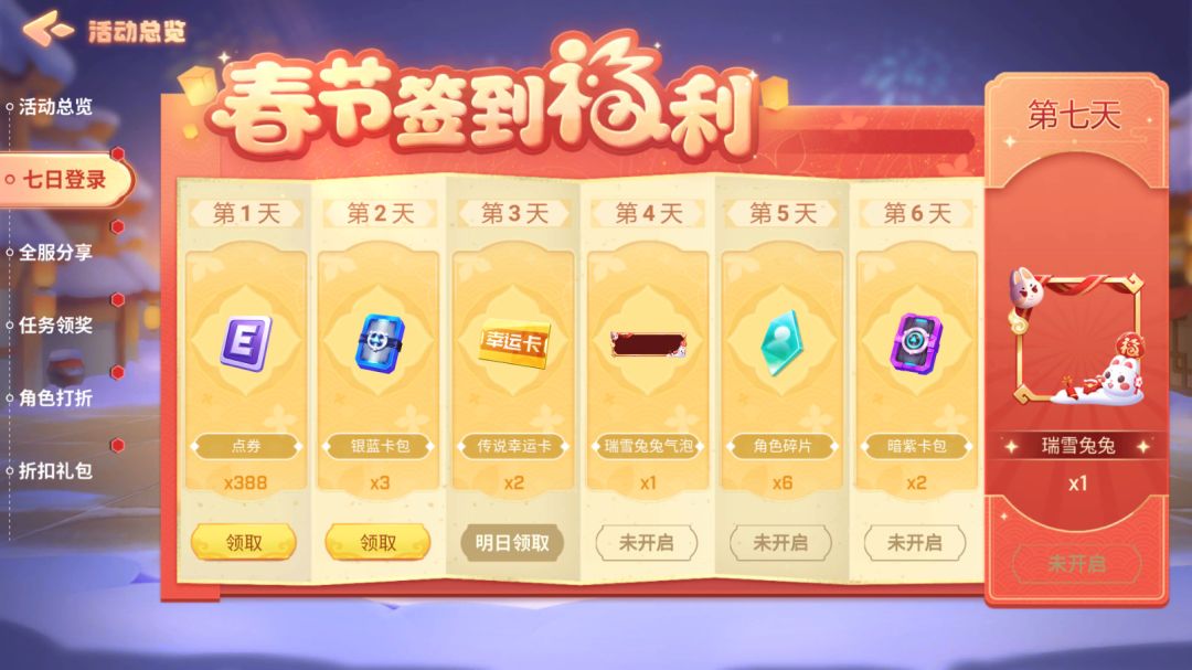 P.S.除夕、大年初一到初七,每日奖励领取次数翻倍至4次!