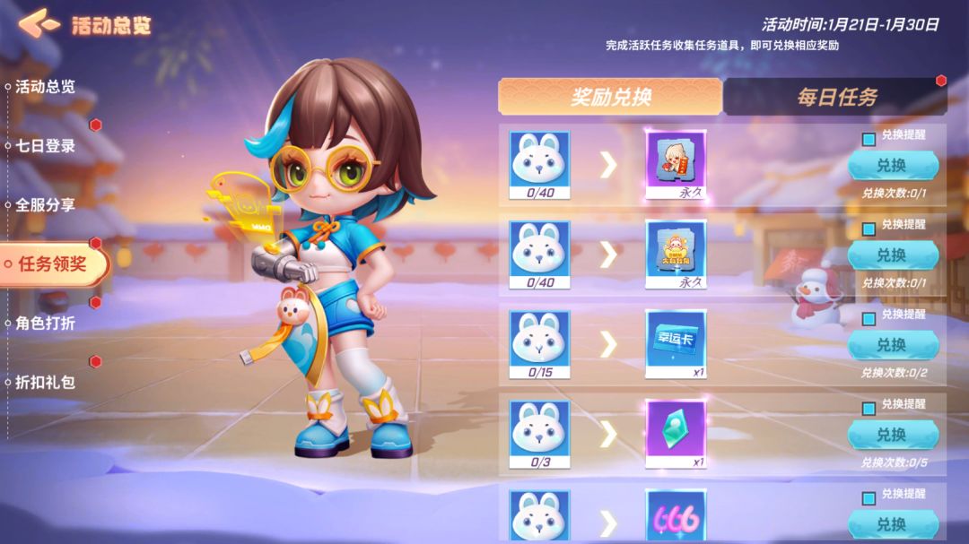 积累一定数量的【新春兔兔】可以兑换丰富奖励哟~