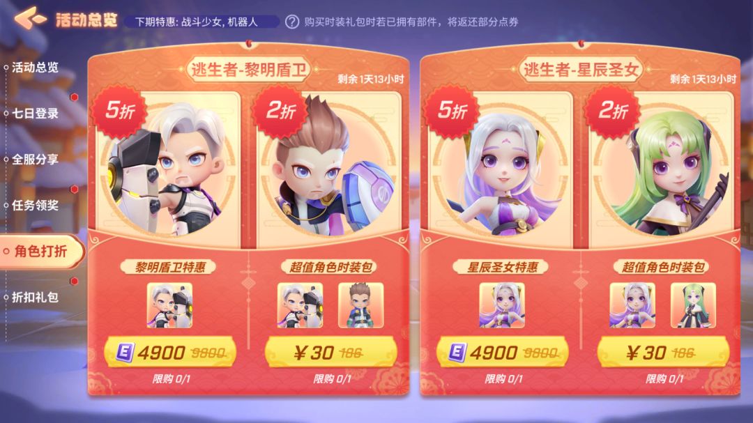 另外,少年们需注意活动期间内,会定期更换特惠出售的角色,有心仪角色特惠出售的话请注意不要错过了~