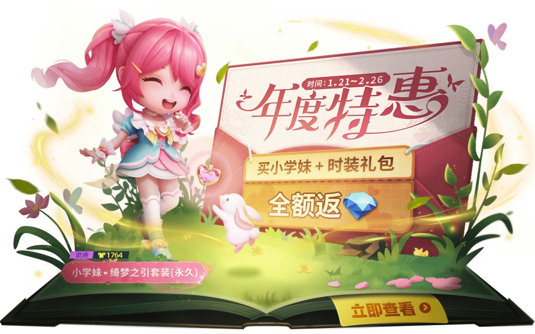 小学妹史低价格礼包来啦!购买礼包后就能享受返钻的福利~