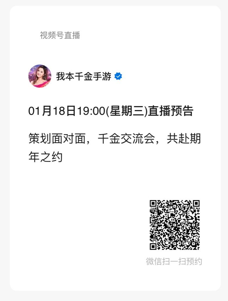 1,扫码关注我本千金手游视频号