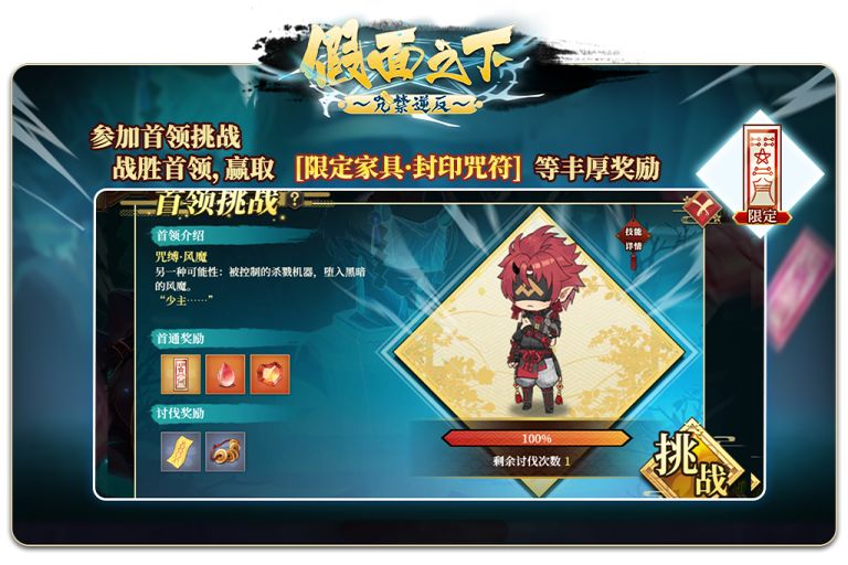 累计通关活动关卡次数还可获得[金]阶因缘·[刻]风魔!