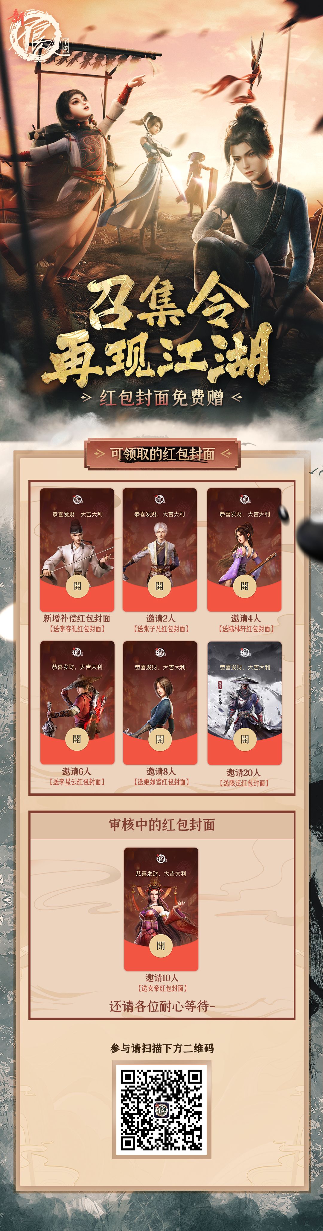 ※目前可领取的是李存礼款,张子凡款、陆林轩款、李星云款、姬如雪款、神秘限量款-新不良帅,共6款红包封面~~