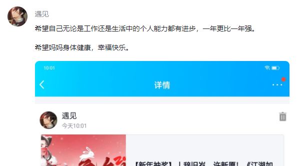 活动期间内,各位少侠可按照下方活动[发帖示例]的格式,在本帖评论区说说你的新年愿望,并将本帖转发至动态、QQ群、朋友圈等任意社交平台并将截图发在评论区,即可参与活动。