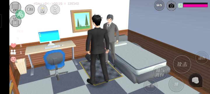 然后我直接给他攻略了,然后他一直跟着我,我抱着他睡了几个小时,六点的时候跟他说拜拜,一般说完拜拜NPC不是自己会跑回家吗?他一直待我家不动,我又点拜拜,然后他莫名其妙不见了,我就打电话给他,他竟然不接我电话!之后突然冒出来,然后我又给他点了好几次拜拜,他还是一直窝在我家,笑死我了,我直接金屋藏娇,现在我要去学校了,他乖乖在家等我回来。然后他的那辆车我也载到家里的车库放着了,美滋滋,又多了一辆车😋😋😋
