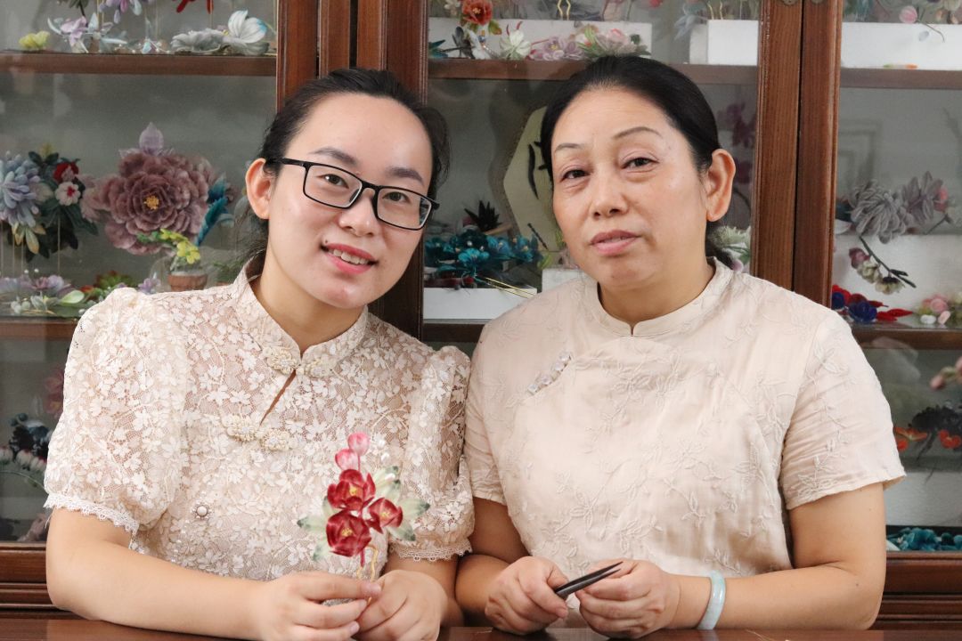 征珊珊是江苏省级非物质文化遗产项目绒花制作技艺区级传承人,与母亲刘梅共同创作了绒花品牌,将传传统工艺与当代审美相结合,创作出许多精致美观的绒花作品。
