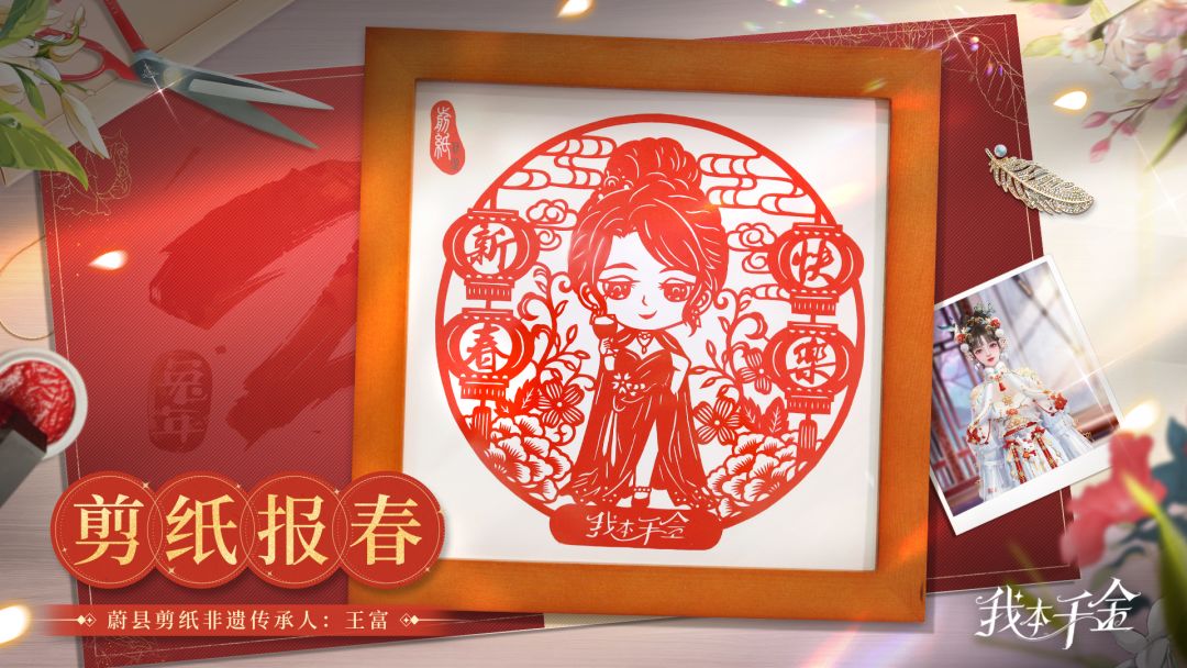 新春佳节,《我本千金》携手蔚县剪纸非遗传承人王富、扬州绒花非遗传承人征珊珊,以及非遗绳结·中国结传承人杨林娟联动合作,共同推出专属于三小姐的新春定制非遗周边,游戏内联名活动和配饰将于1月20日倾情上线。