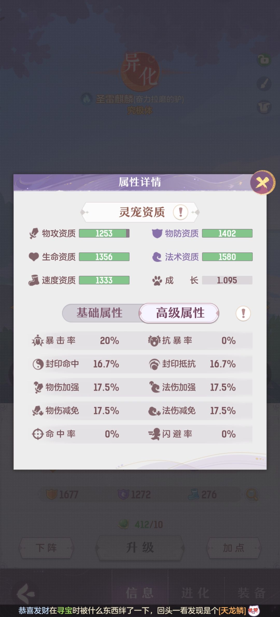 麒麟的暴击率还是那么低,官方是在搞笑吧,我还特地打神石扣了一个技能