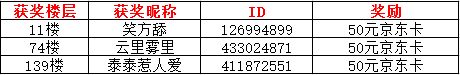 活动结束后,本恶魔会从所有符合要求的回复中抽取3位幸运准武者,赠与50京东卡奖励。