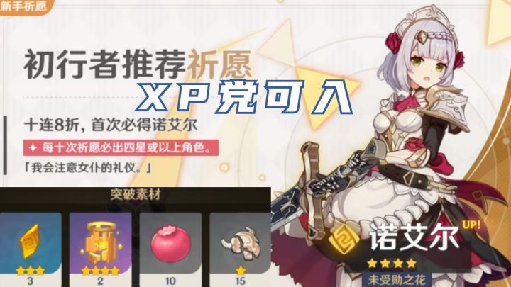 第一次获得到的四星角色是不会附带星尘的,新手祈愿虽说能必出诺艾尔,但是要想诺艾尔的盾扛得住,还是要花时间与精力去养的。所以非XP党不建议入手诺艾尔,诺艾尔突破材料也是非常难打的,萌新噩梦,“玄岩之塔”则需要击败30级以上的无相之岩获取,单打是很费时间的。池子内容与常驻相差无几。