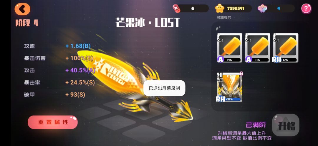 ②芒果冰的词条主洗暴击,爆伤,攻击,破甲