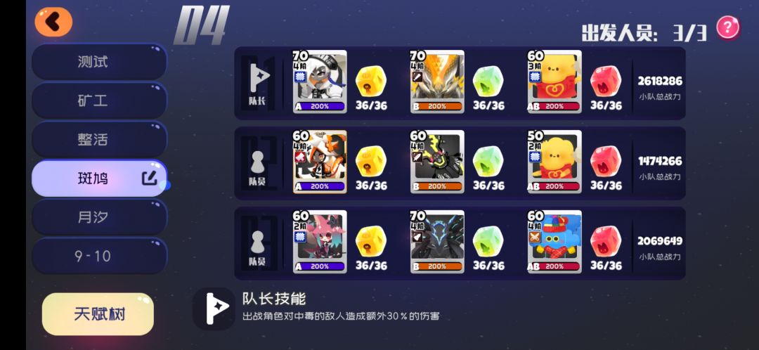 二鸡块提高攻击力一个5星加一个6星,蓝云给无敌防止暴毙,毕竟活着才有输出