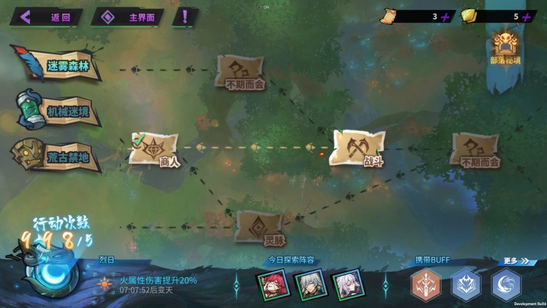 迷境采取了Roguelike玩法机制,玩法中每天的天气情况将发生变化,影响整个关卡挑战的策略选择。因此各位镇魂将需通过灵活的选择挑战路线以及BUFF状态,结合关卡天气情况等策略元素,探究通关的最佳路径。