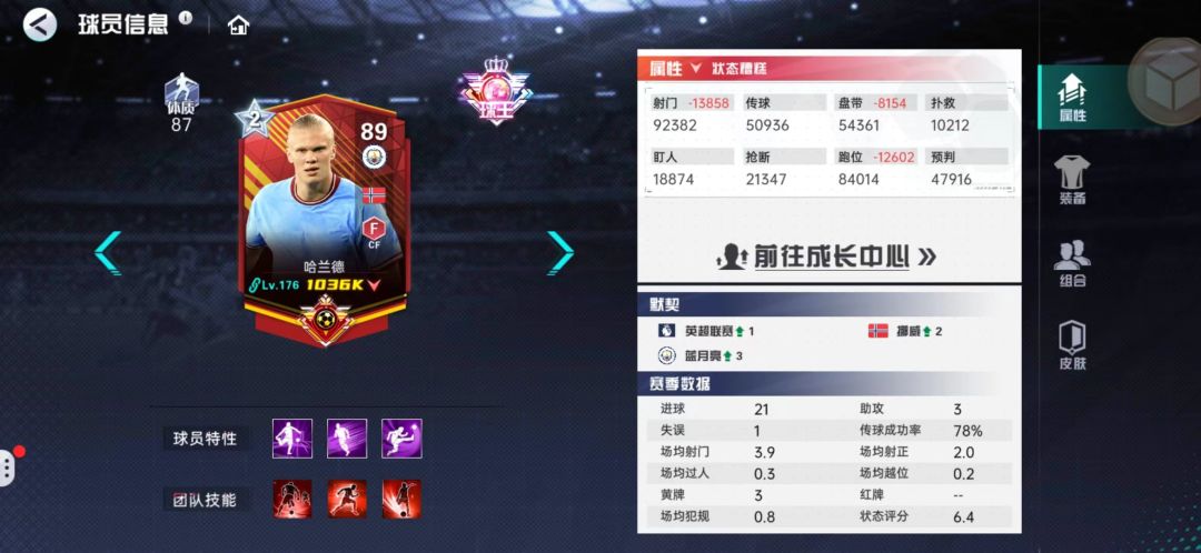 首先马赫雷斯、格拉利什、贝尔纳多席尔瓦这三个人我是必选的,这三个人的皮肤都可以在英超赛区里白嫖加成10%的皮肤,能加默契又能加能力。曼城的中锋比较少,只有哈兰德和阿尔瓦雷斯。有条件的可以搞一个阿尔瓦雷斯世界杯皮肤。微氪党就选择哈兰德吧,有89的能力。其次我会选择梅西和C罗,2个球王,可以增加不少默契。中前场我会选择以上6人