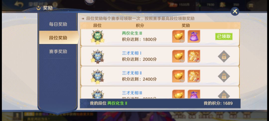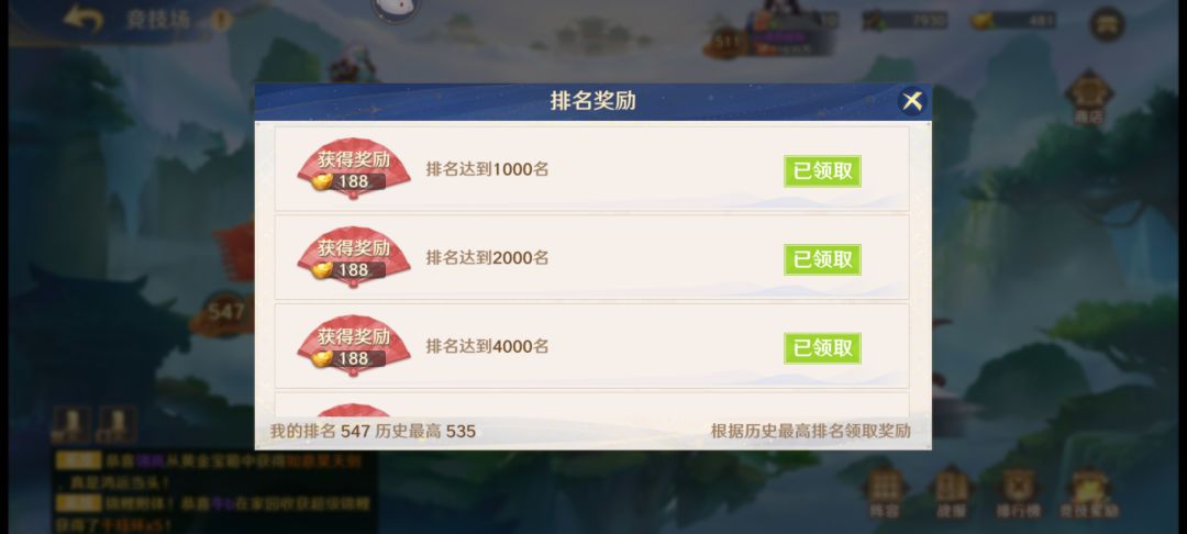 而竞技场玩法相对于荣耀玩法来说会略微有一定程度上的削减,达到一定排名后将获得元宝的奖励,其次则是产出的重要材料“威望”,威望可用于在pvp商店兑换所需要的橙色神将碎片。