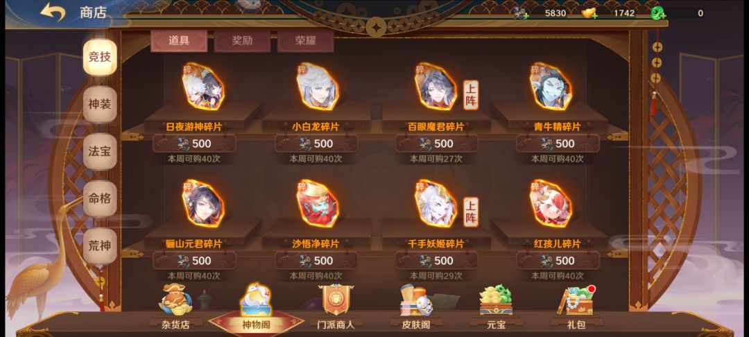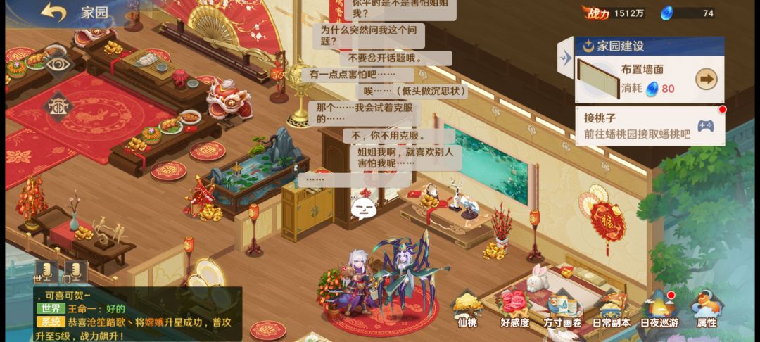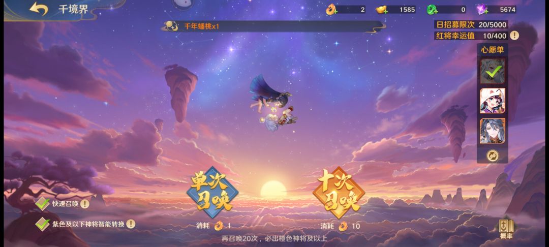 其次则是日常副本、“方寸画卷”和“仙桃”玩法,“方寸画卷”的重点在于获取好感度礼物、元宝等,好感度礼物可用于神将好感度的提升,而神将需要在好感度达到2级才能够开启“信物”也就是同类游戏的(“圣痕”、“御魂”、“符文”)功能,部分神将好感度达到6级后会解锁相对应的全新插图(可以在图鉴功能中提前看到)。