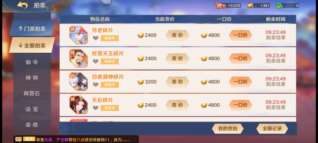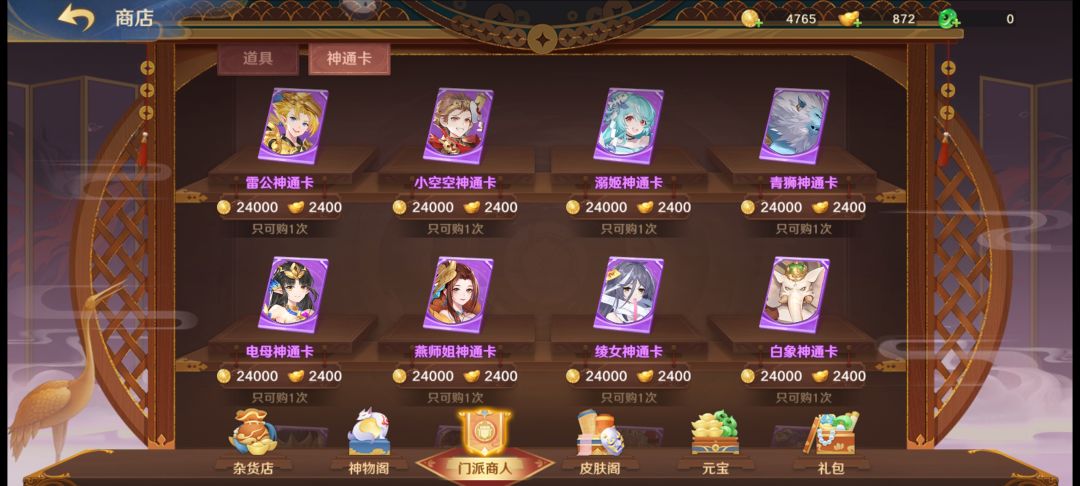 门派玩法相对来说还是很重要的,也是很拉开差距的重点,活动后的拍卖可获得游戏类所需要的大部分主要材料。通过参加门派活动所获取的门派贡献可在门派商城内兑换玩法重点的仙灵和神通卡。