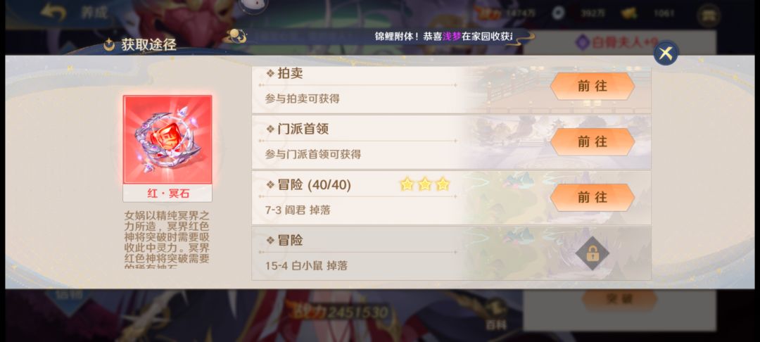 红·冥石,掉率实在是感人,而且每天只能刷40次,平均每10次也就掉落一个,要5个才能合成一个,刷得人头都大了。