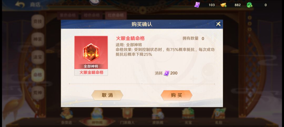 心魔主要产出为紫晶,紫晶可用于兑换神将的武器及武器碎片,在获得相同数量达到要求的武器时可满足武器的进阶,当累计消除心魔伤害达到一定值时会完成指定任务,并获得相对应的奖励,奖励的中心为万能法宝,可用于代替一个橙色武器用于升阶。(对萌新的建议就是能省则省,尽量不要用元宝去换武器和万能法宝。)