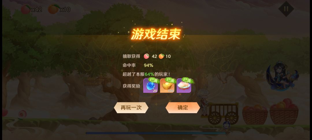 仙桃玩法通过推车的方式接桃子送至钟点,达到一定数量后会过得相对应的材料和元宝,同时也将获得一个仙桃,用以主角使用,提升部分属性以及buff效果。