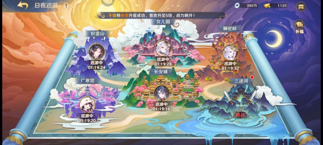 1.家园玩法:算得上是重要的玩法之一,而其中的“日夜巡游”板块,也是产出神将碎片的重要途径之一,完成后除了选择神将的碎片外还会获得大量的装备精炼资源以及玄石资源。