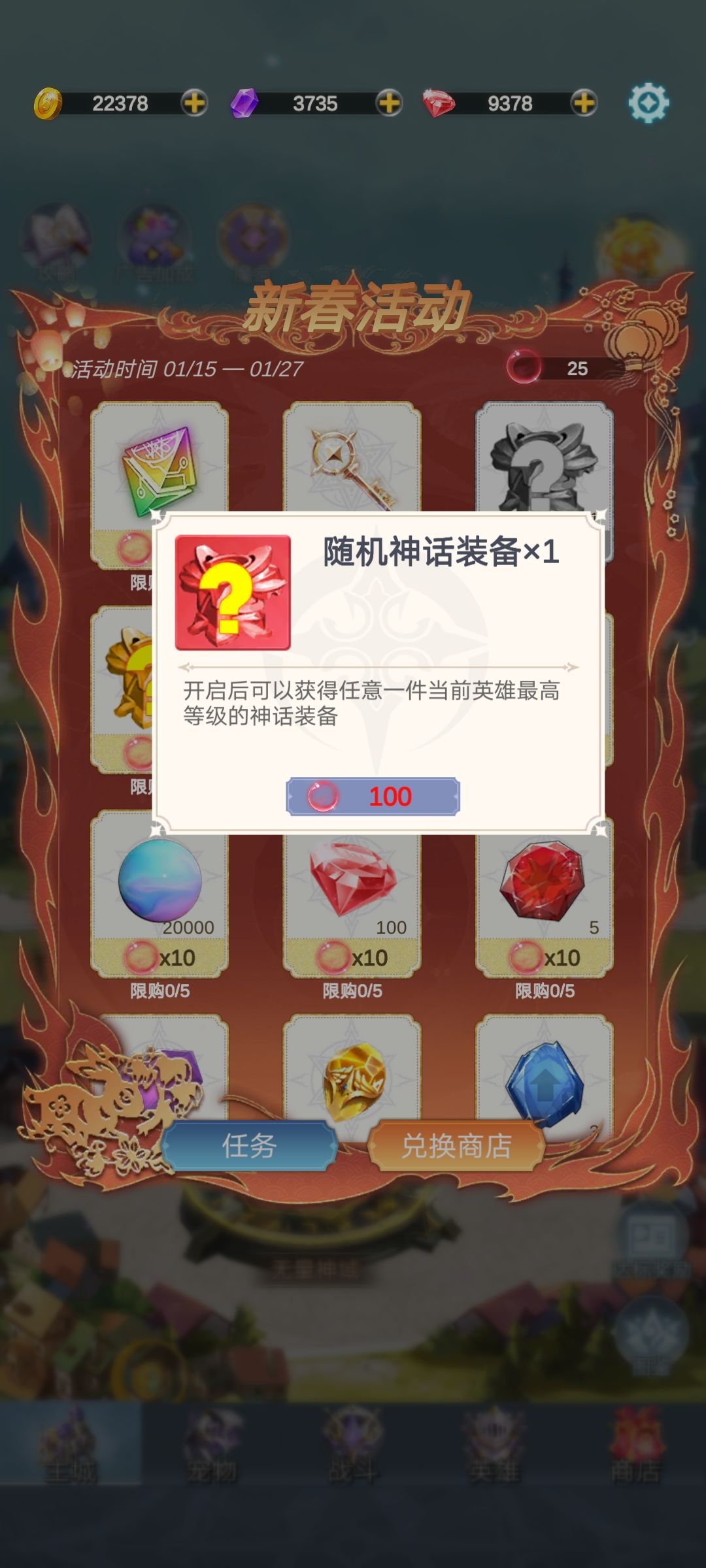 这个新年活动兑换商店,兑换了个神话装备,点击后弹出成功获取的提示框,但提示框里没显示是什么装备,背包里也没有,这应该是BUG,作者你要赔我