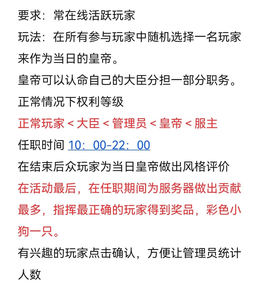 现在正在统计玩家的确认参与,并于明日开始活动。