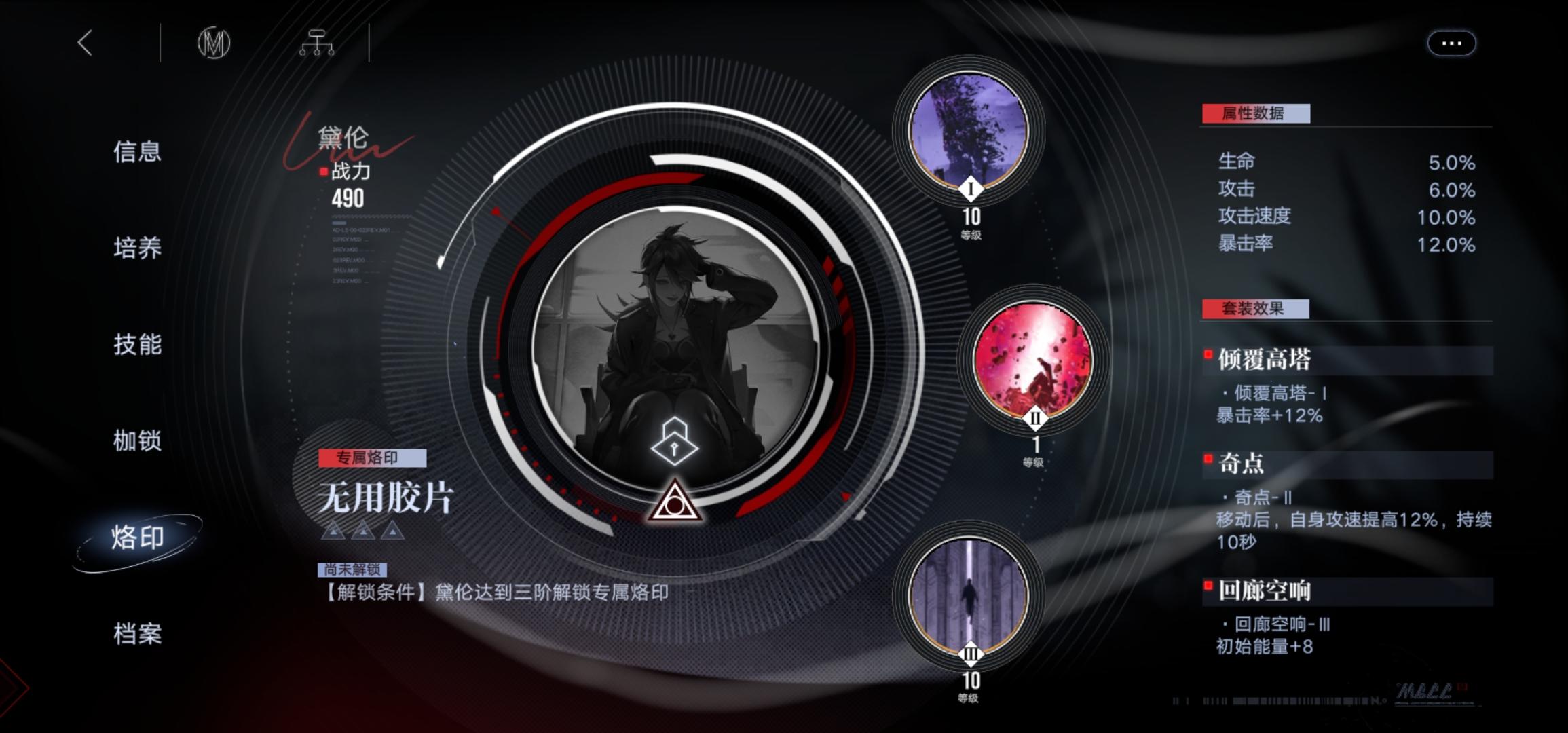 黛伦专属烙印能吃暴击和暴击伤害,目前黛伦自带56%暴击,加上高塔烙印12%暴击,再加上嗷呜30%暴击,一共98%暴击,虽然可以带重逢能100%暴击,但性价比不高。专属烙印升满1500%攻击倍率可以连续使用三次,这种爆发可以说是物理系的伊琳娜,更离谱的是还可以吃暴击和暴击伤害。