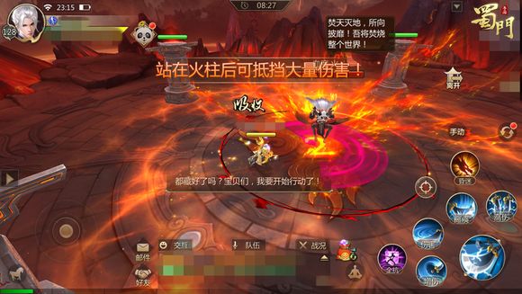 第一阶段:85—100%血量,将使用不同的火性技能伤害蜀友;