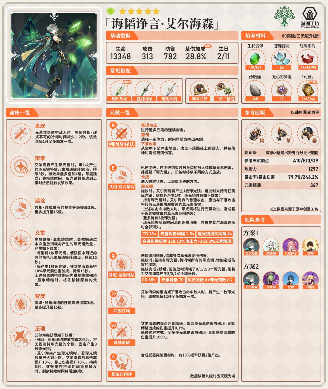 技能评价:精通提高光幕和大招伤害,提高了精通对于艾尔海森的收益,拉大了精通和攻击对于艾尔海森的差距。