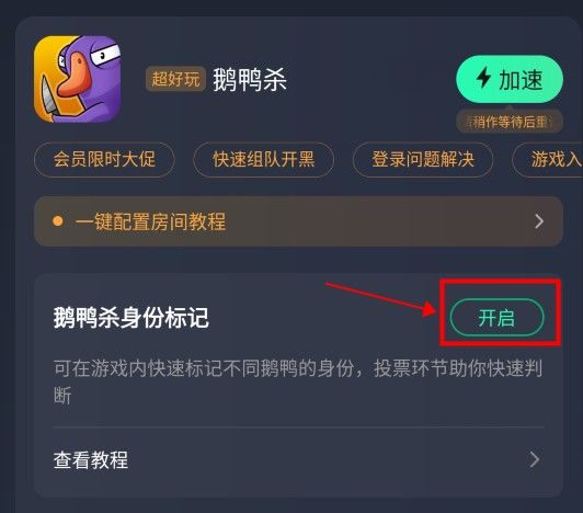 功能入口在加速列表页鹅鸭杀游戏图标下方,如图所示 点击开启按钮