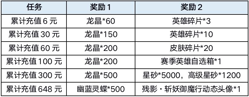 (1)在本活动中花费30元购买任意指定英雄后,可获得龙晶奖励返还