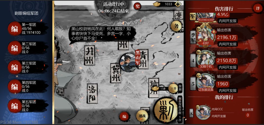 ● 贼首挑战模式从70人布阵修改到56x5的BOSS车轮战,最大5场合并伤害计算