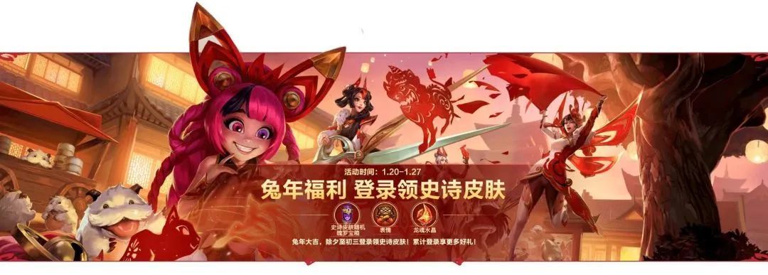 奖励:“瑞兔”队旗、“新年窗花”名片框、海克斯护盾卡