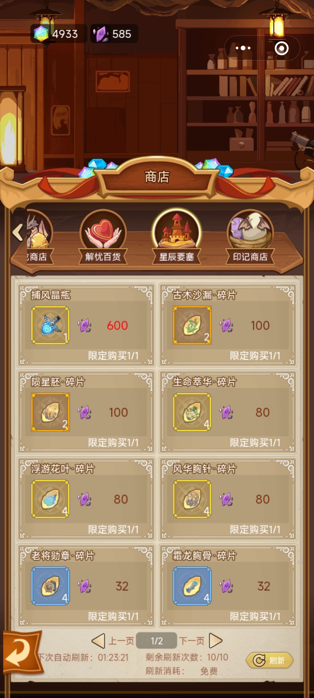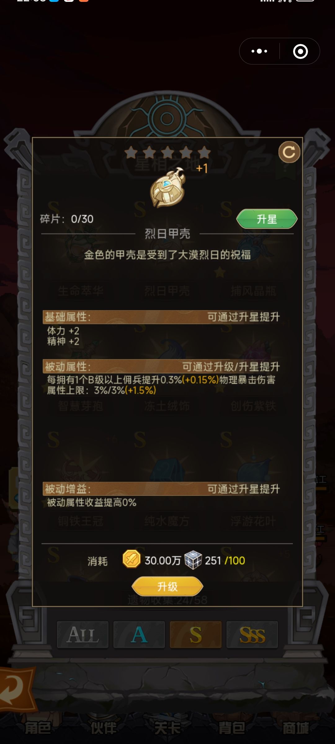 首先讲一下商店,商店是有概率刷出s跟sss的