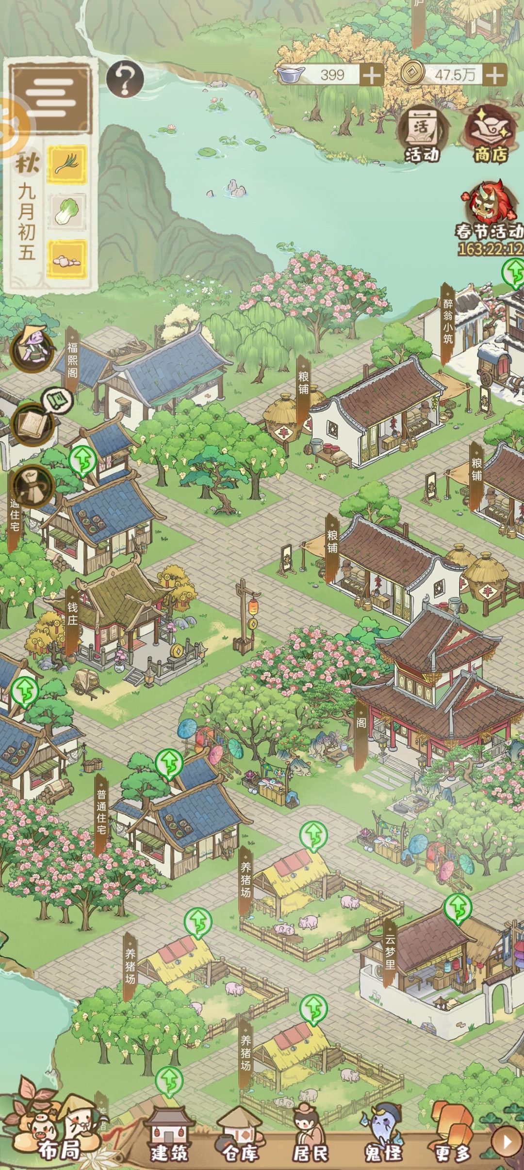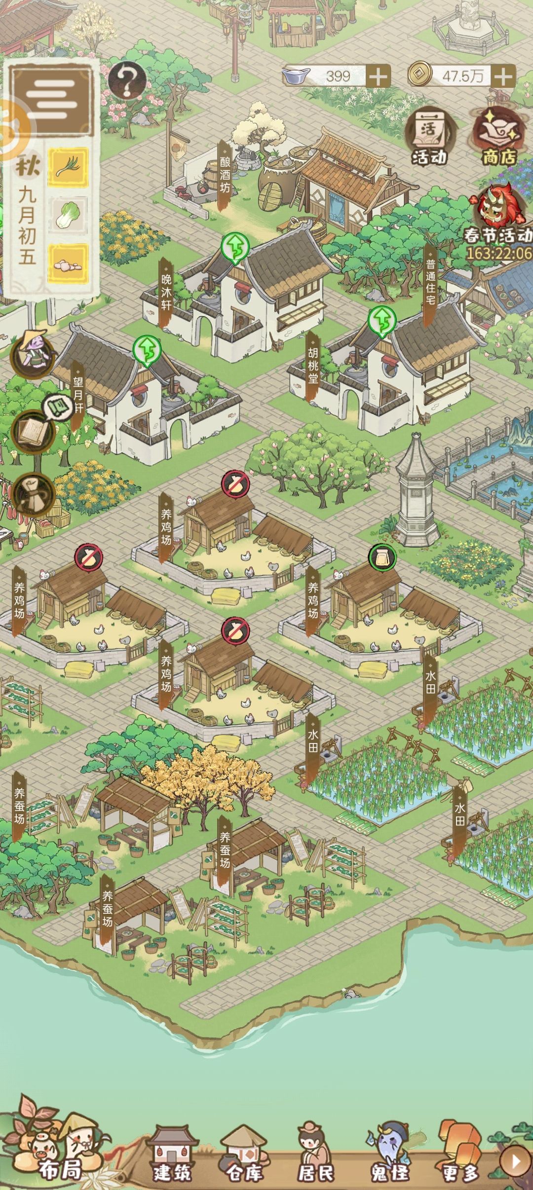 摆了4个小时,累死了,不过最后看到自己的小村落初具规模,还是很开心哒