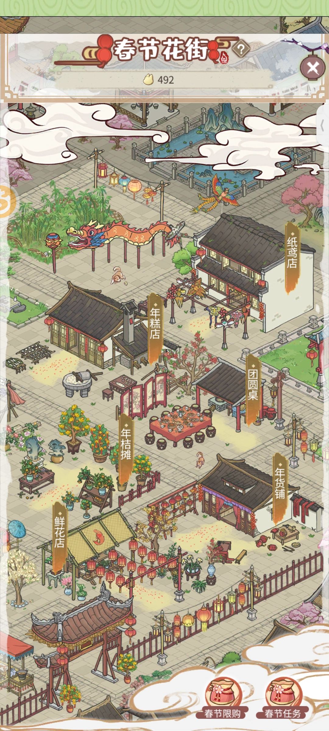 3.兔币(年货铺):建筑和装饰做固定限购按图上花街给整1、2套的,香、鞭炮那些每日刷新(这没啥意见的)