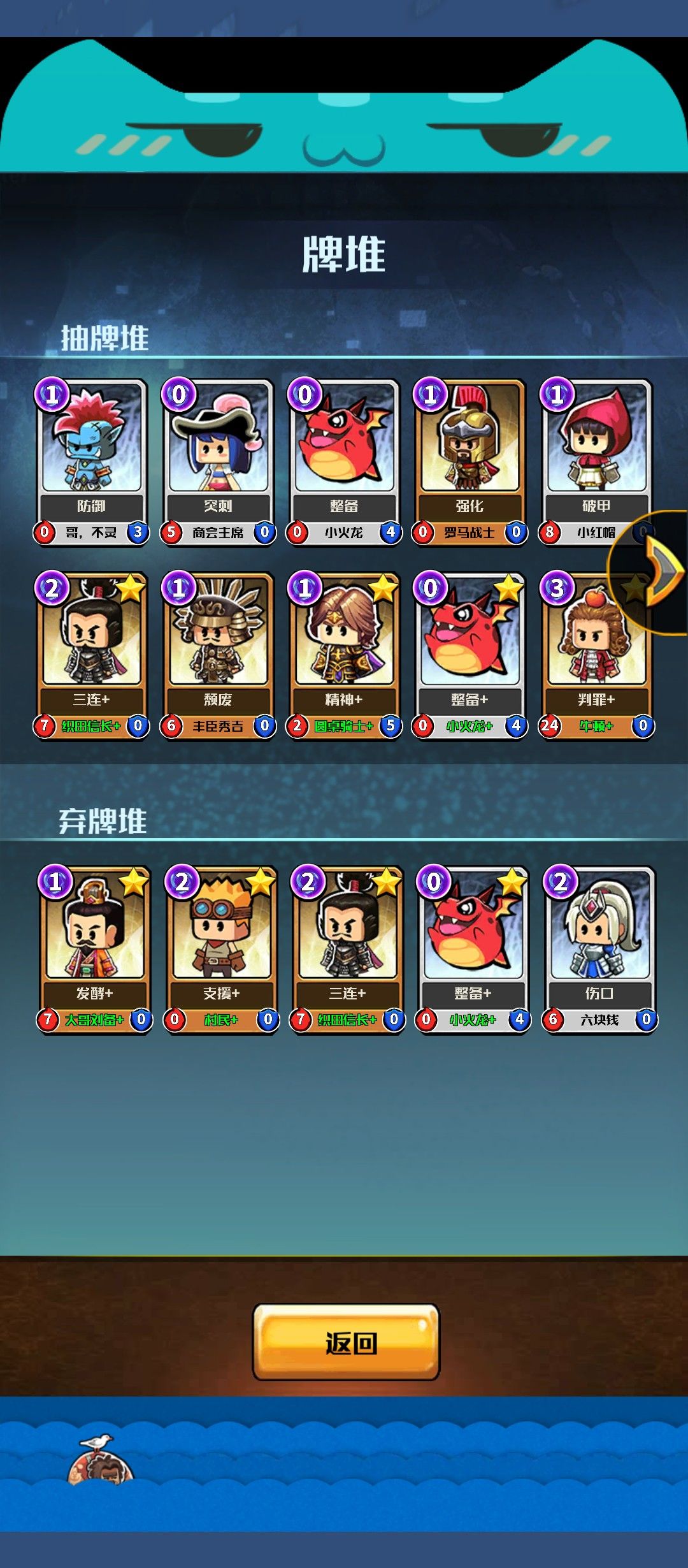 试练之路通关牌堆和装备一览,瑕疵的地方爱豆豆多了一个。不要回血拿没用的牌,如果选择加防御攻击的时候给你两张没用的牌就不要这个buff。前期最高刷出一个女王升一星这样可以保持没局一次回血状态。除了我的牌堆其他的卡牌谨慎选择。打boss前要先看看自己的血量,如果低于50最好先刷小怪回血。装备手环、护腕必备。欧气包开出卡牌后如果不好就不要点出界面直接清后台退出游戏。下次直接拒绝。