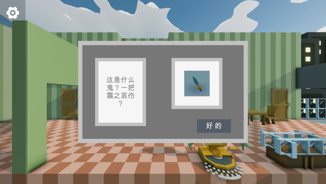 第一关为《角色扮演》,进屋后,发现老婆躺在地上,后背插着一把剑,拔下“霜之哀伤”后即可救活老婆。