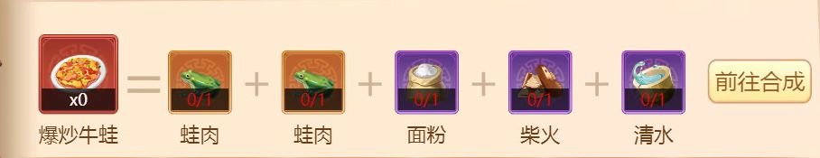 掌门可根据该食谱提前制作并解锁【爆炒牛蛙】