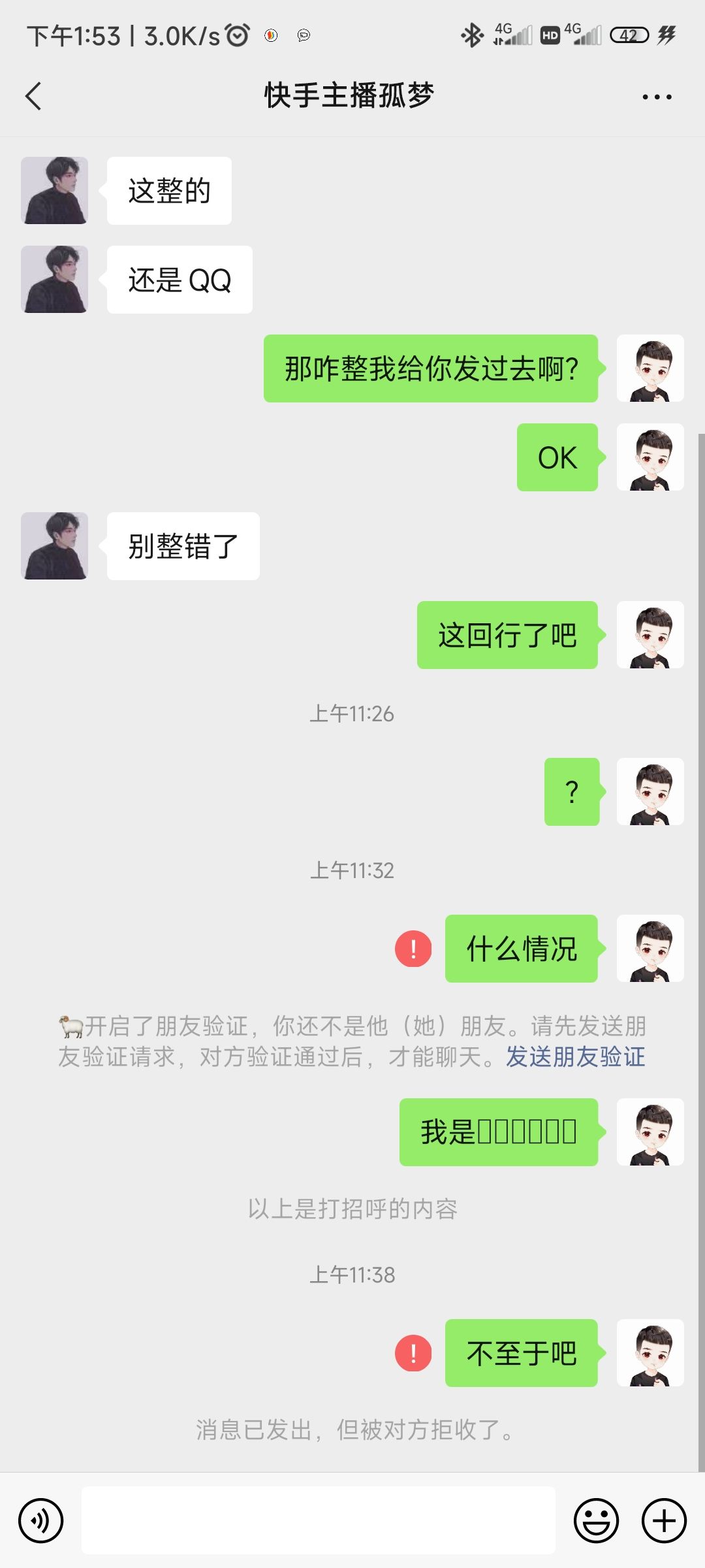 图一是给他发的微信号图二是时间 图三是他把我拉黑图四是他把我加入黑名单 还有人说这个不是他快手号吗? 图五是他微信 图六是他QQ 怎么说那知人知面不知心 希望以后大家要谨慎点 图789是给他发钱的过成