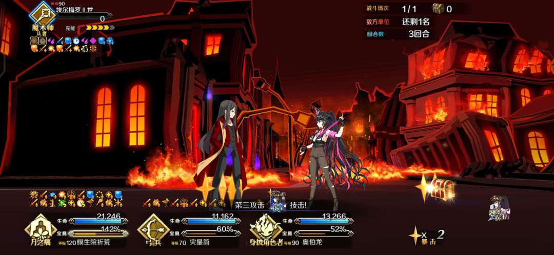 1t全buff道满换c呆,2t赢一手70级c呆能送掉,奥伯龙上场补buff补星,3t宝红蓝暴击秒,感觉也没啥难度。