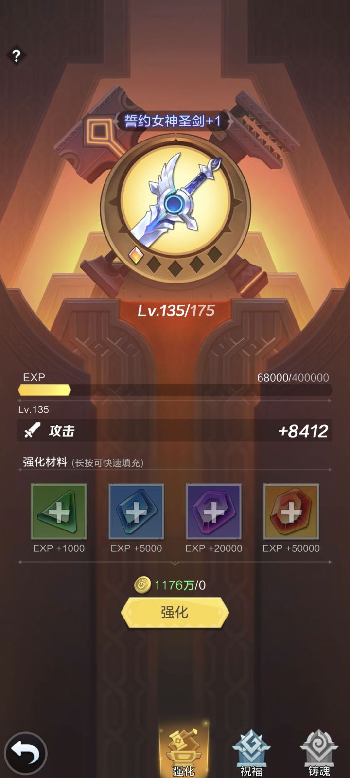 ①消耗强化水晶升级,消耗精炼之源突破等级上限;