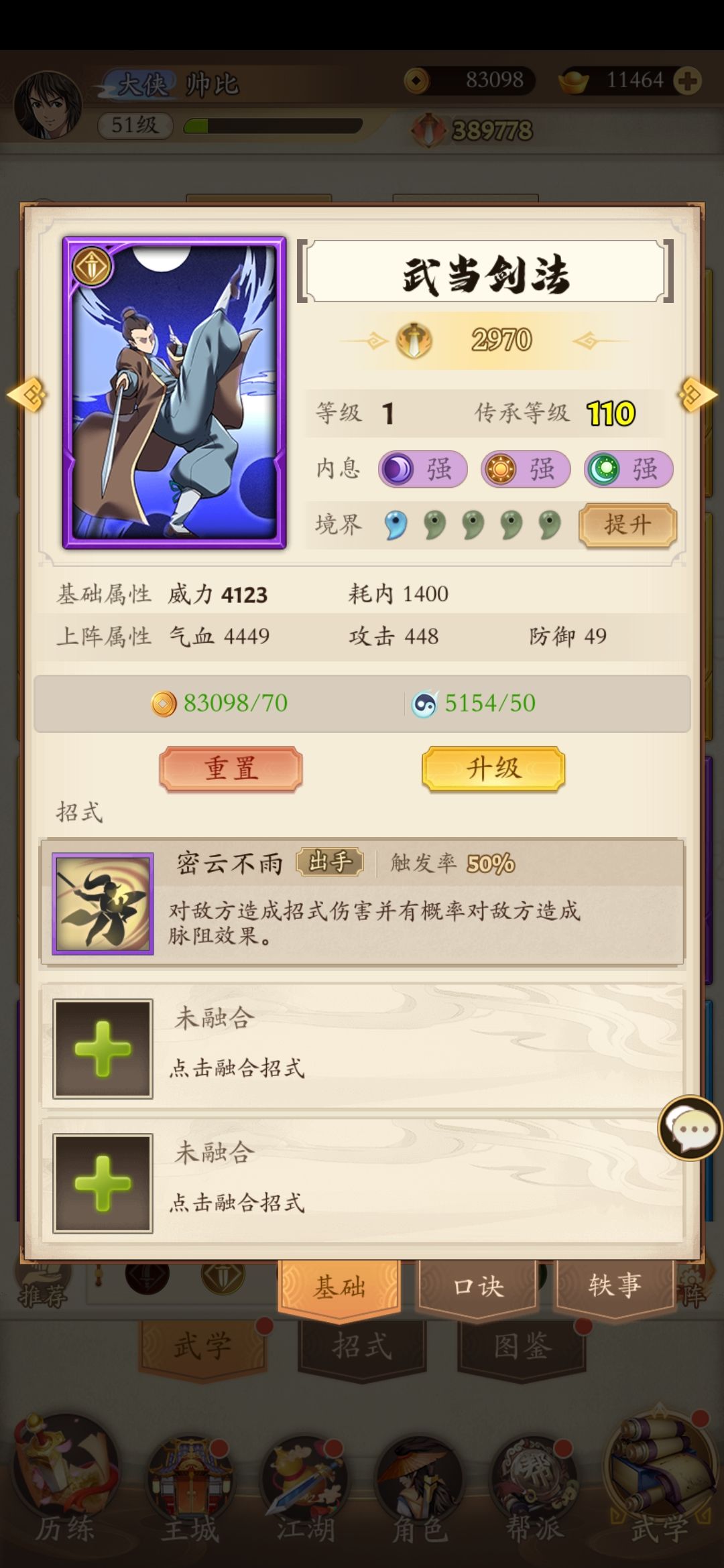 武当剑法已经有两本了,经脉寸断招式怎么学不到?