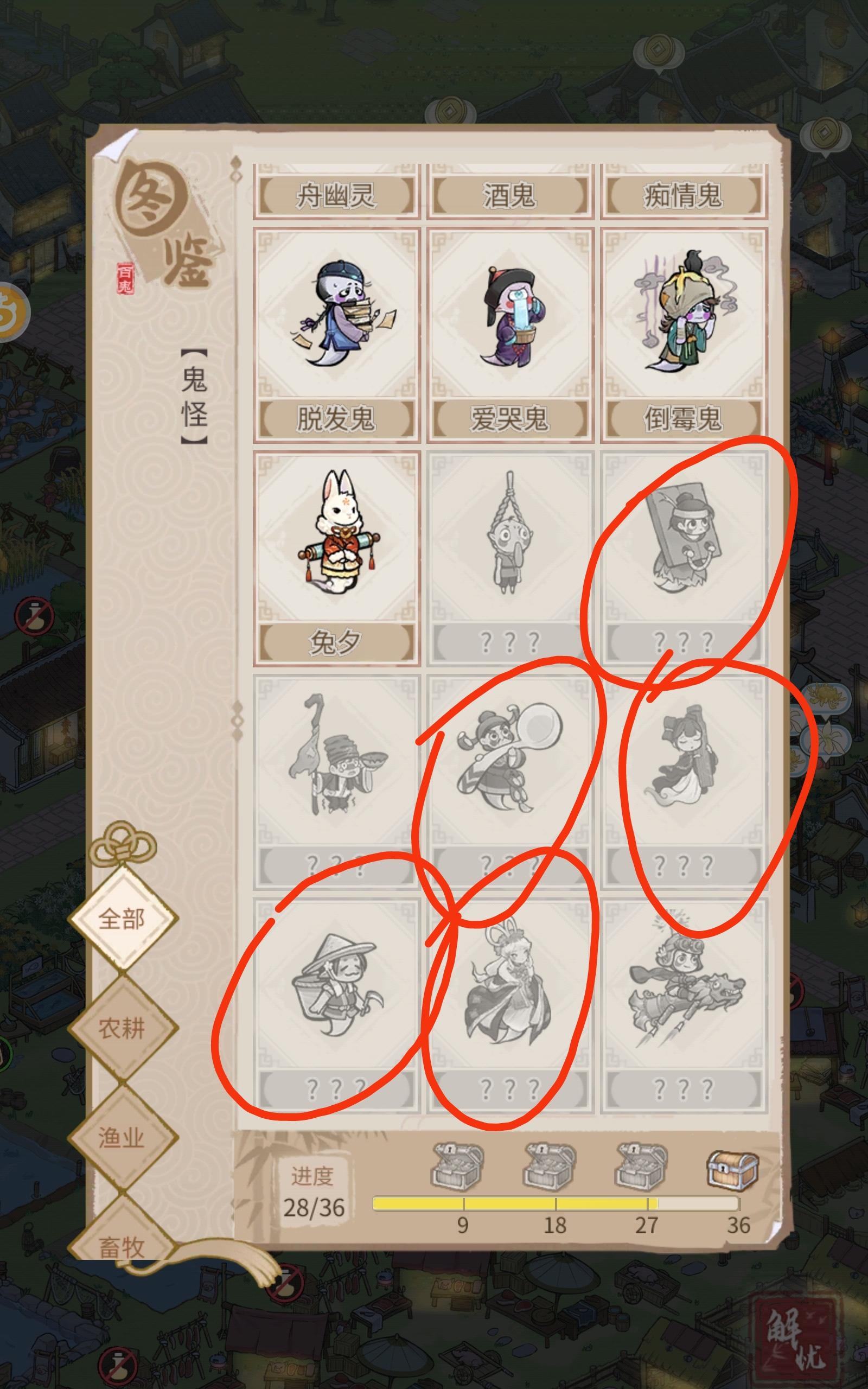 2.图鉴圈起的鬼已经有了但是图鉴没有显示,居民图鉴也有同样的问题。